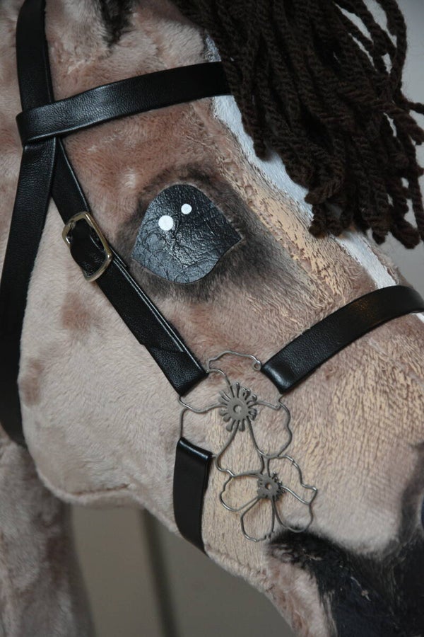 The Orchid Bridle is bitless and brand new! Perfect for your hobbyhorse and budget. It fits many different hobbyhorses and is adjustable in size.
