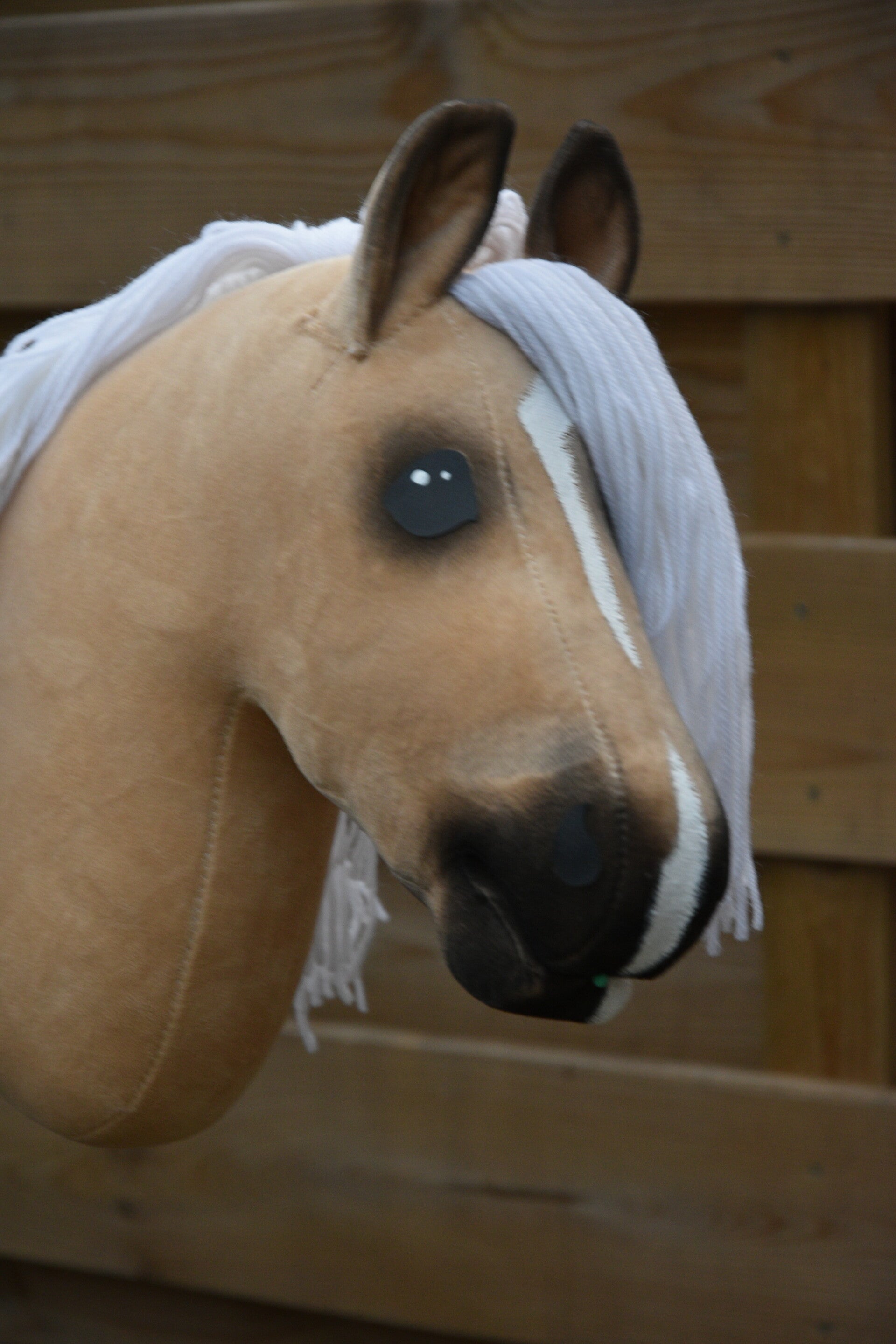 This Budget Hobbyhorse (Size S-M) is the same size as our regular hobbyhorses, but made without interfacing. This makes it a little less firm, yet lighter and easy to handle – perfect for kids and for jumping.
